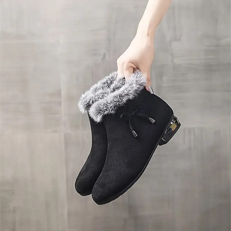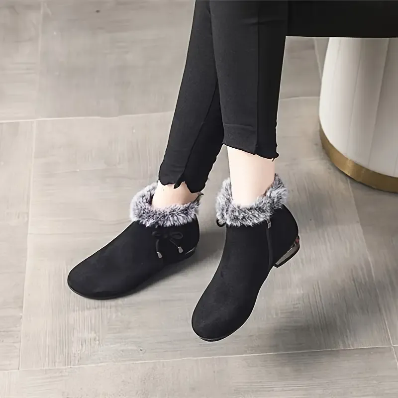 Women's Chunky Heel Short Casual Side Zipper Plush Lined Boots